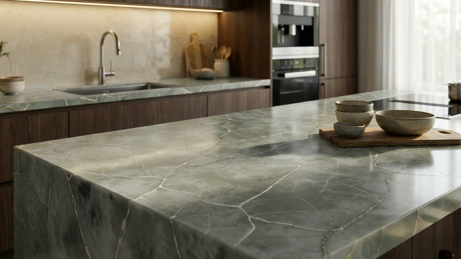 Okolju prijazen material, ki združuje najboljše iz narave in človeške izdelave, je sestavljen iz naravnih kremenovih zrn (95%), polimernih smol (4%) in pigmentov (1%).