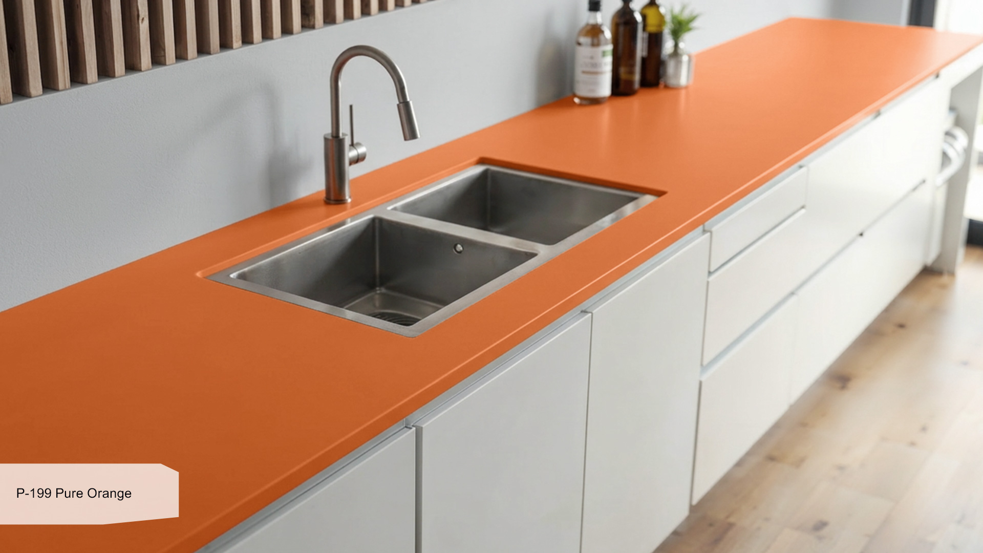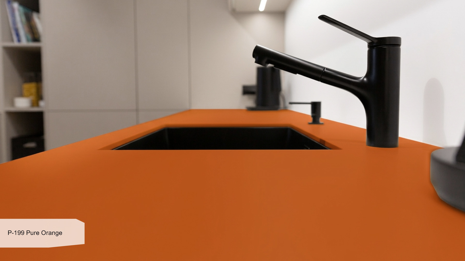 Akrilne kamnite površine ponujajo paleto modnih barv, ki ustrezajo vsakemu okusu. Vaš svet postane svetlejši. Pozabite na siv vsakdan. Vsakemu edinstvenemu dnevu dodajte čarobnost barv. Več barv pomeni več edinstvenih možnosti. Še posebej z brezšivno tehnologijo, ki omogoča izdelavo trdnega in monolitnega izdelka iz več plošč kamna.