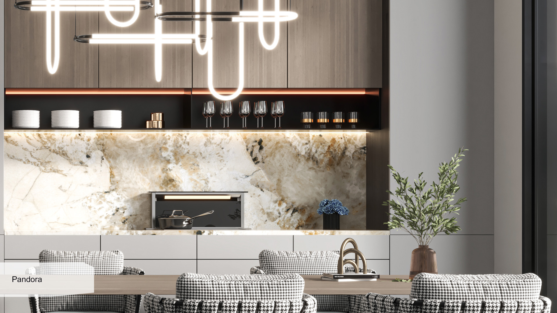 Poglejte, kako bodo kamnite in Keramične plošče videti v notranjosti.